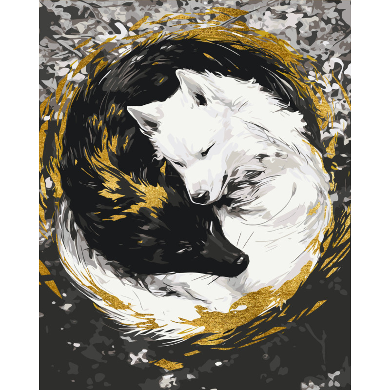 Картина за номерами Пара вовків з фарбами металік (інь янь) 40*50 см LW 3458