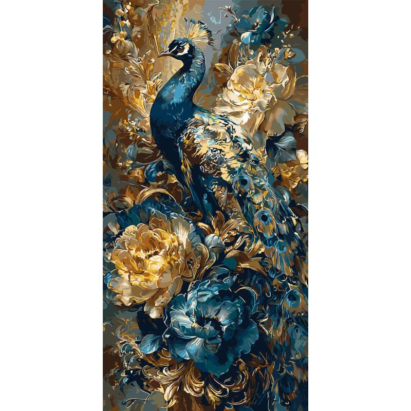Картина за номерами Павич серед квітів з фарбами металік. Птахи 40*80 см LW 5183