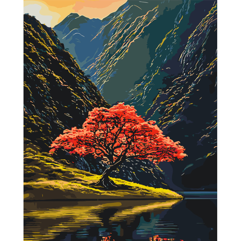 Картина за номерами Пейзаж. Дерево серед гір 40*50 см  LW 3514