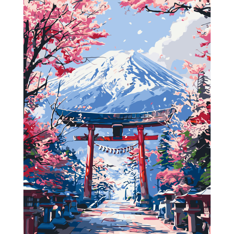 Картина за номерами Пейзаж. Фудзіяма в сакурі 40*50 см LW 3456