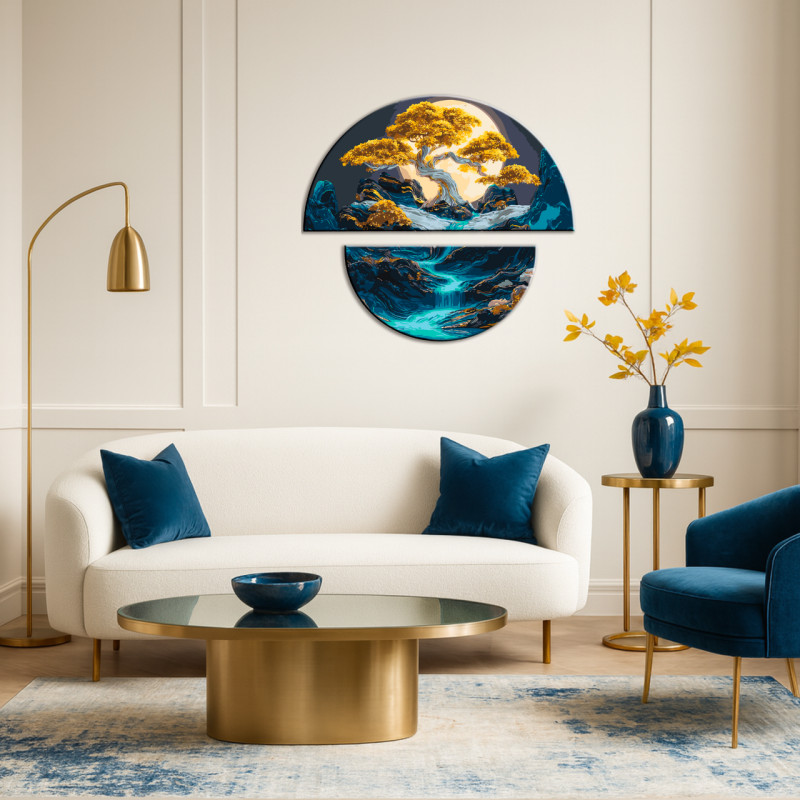 Картина за номерами Пейзаж. Нічна гармонія з фарбами металік (напівкруги) 70*70 см  OSR 1007
