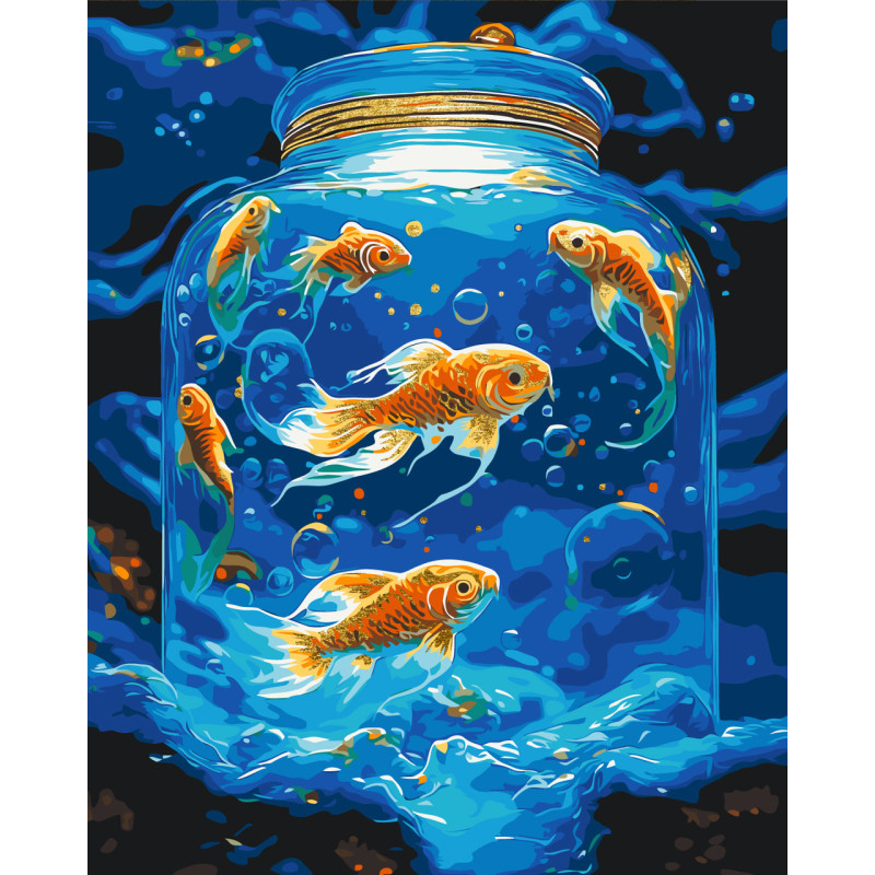 Картина за номерами Пейзаж. Підводний світ, рибки з фарбами металік 40*50 см LW 3460