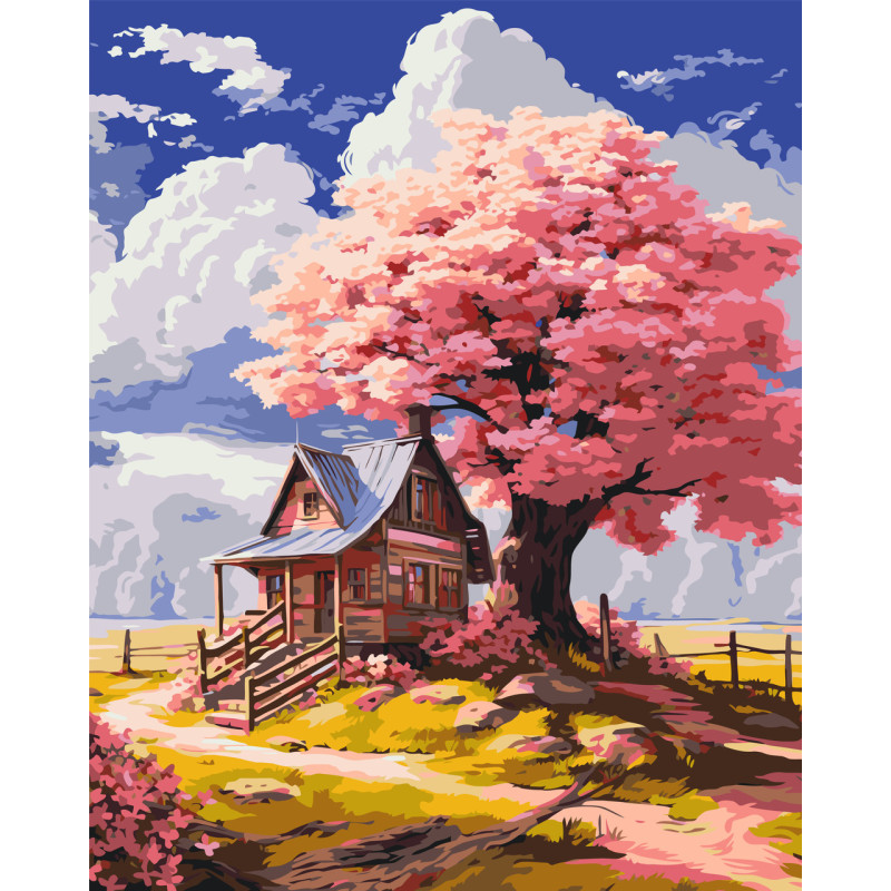 Картина за номерами Пейзаж. Рожеве дерево в лісі 40*50 см LW 3296