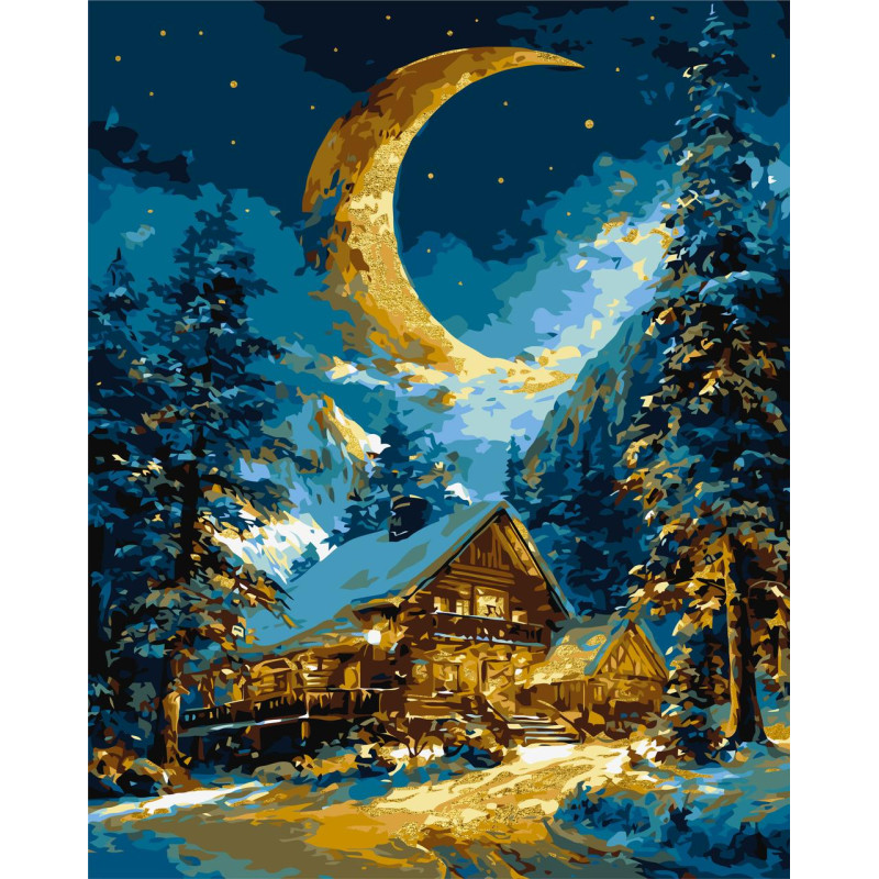 Картина за номерами Пейзаж. Зимове тепло дому з фарбами металік 40*50 см LW 1605-01