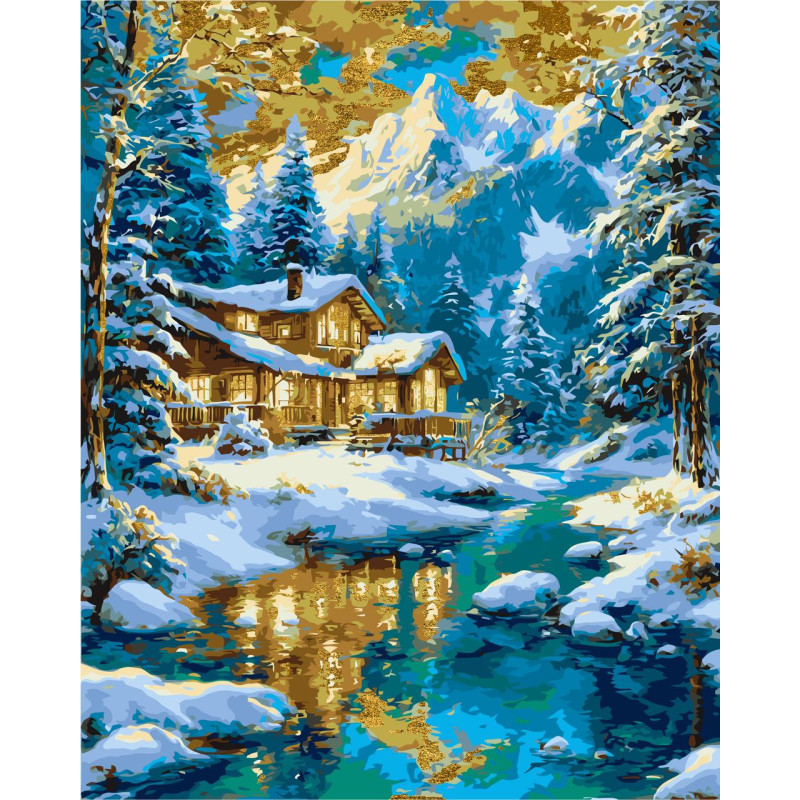 Картина за номерами Пейзаж. Зимовий вечір у горах з фарбами металік 40*50 см  LW 3554