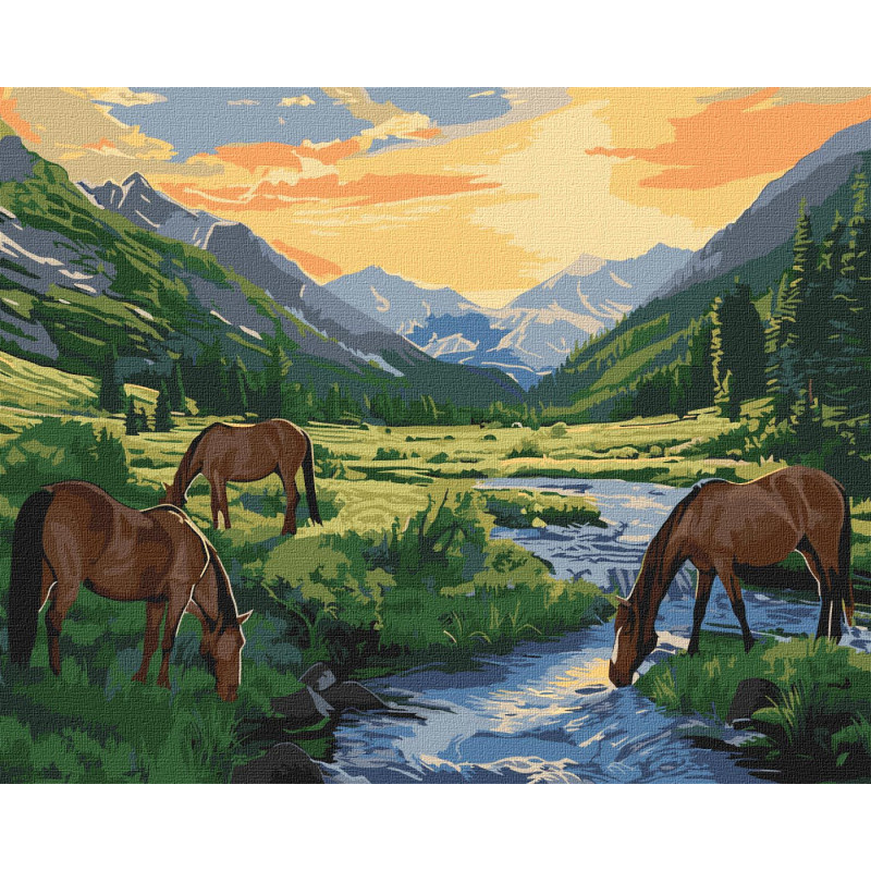 Набір для творчості з красивим сюжетом на полотні і всім необхідним для створення готової картини: - Натуральне полотно на підрамнику із галерейною натяжкою. На картині нанесена схема контурів зображення з нумерацією - 3 нейлонові художні пензлики - Соковита палітра, пронумерованих, акрилових екологічних фарб в контейнерах - Контрольний лист та графічна схема.