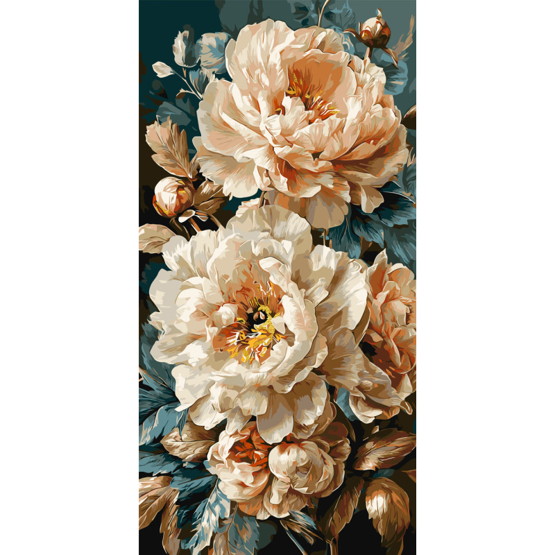 Картина за номерами  Перлинні півонії з фарбами металік 40*80 см LW 5193