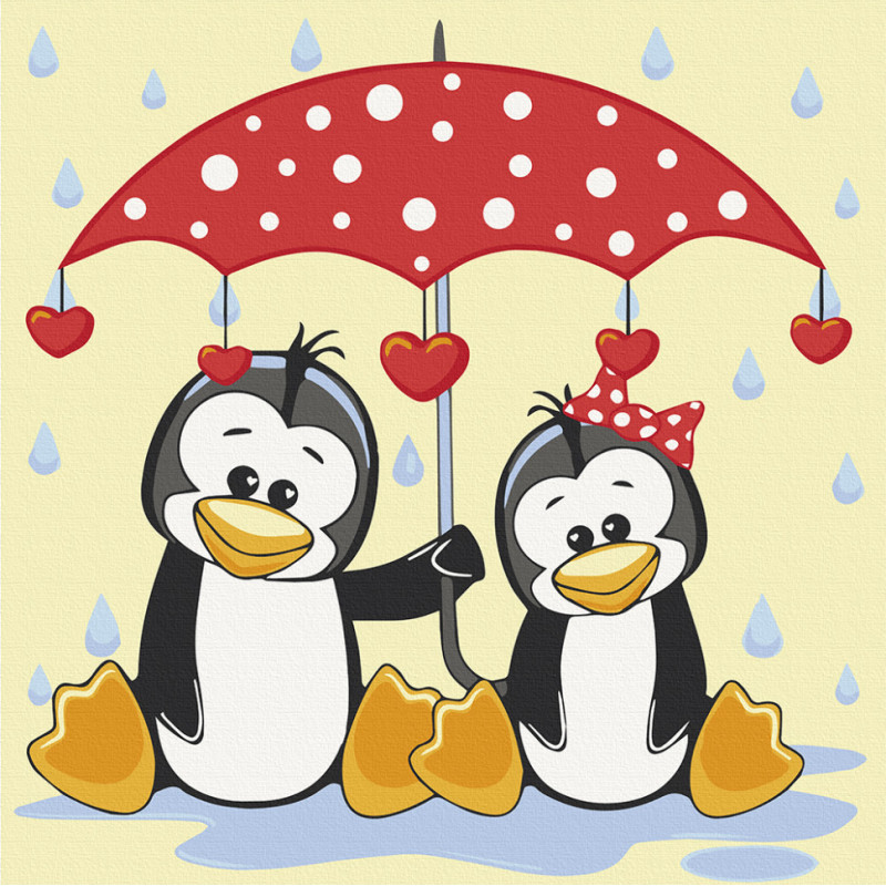Картина за номерами Пінгвіни під парасолькою 30*30см  15543-AC