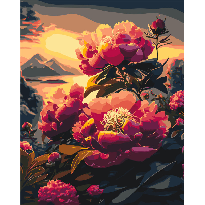 Картина за номерами Півонії на фоні гір  40*50 см LW 2004