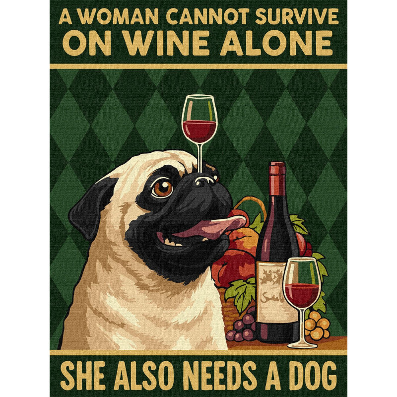 Картина за номерами Постер. Вино і собака 30x40см КНО6809