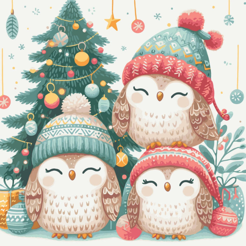 Картина за номерами Різдвяні совенята 40*40см 11586-AC