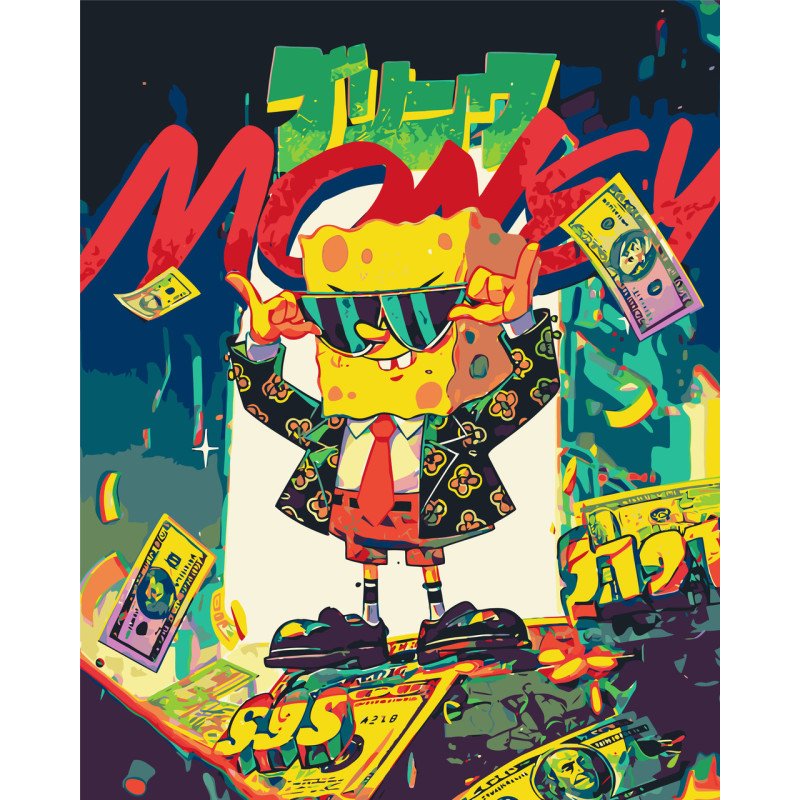Картина за номерами Спанчбоб з грошима / Губка Боб 40*50 см LW 31680