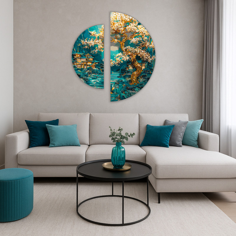 Картина за номерами Спокій японського світанку з фарбами металік (напівкруги) 70*70 см  OSR 1009