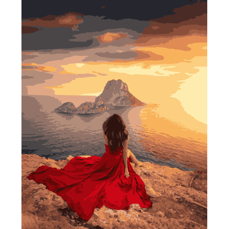 Натуральне полотно на підрамнику із галерейною натяжкою. На картину нанесено схему контурів зображення з нумерацією. - 2 нейлонові художні пензлі - Соковита палітра, пронумерованих, акрилових фарб у контейнерах - Специфікація