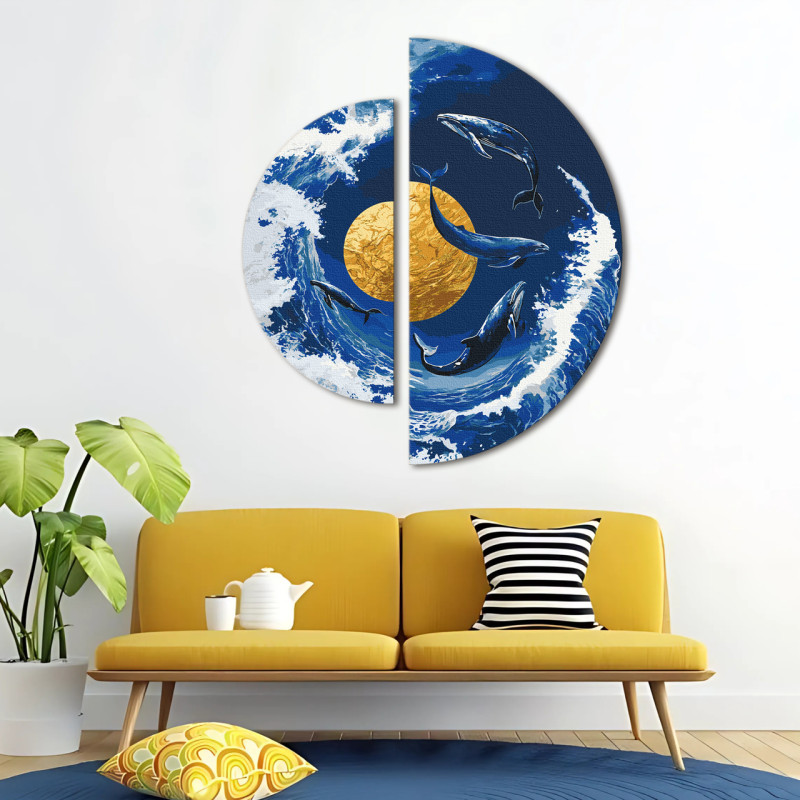 Картина за номерами Танець китів біля золотої планети з фарбами металік (напівкруги) 70*70 см OSR 1002
