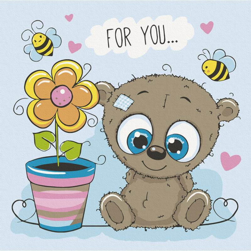 Картина за номерами Ведмежа з квіткою 30х30 см 15513-AC
