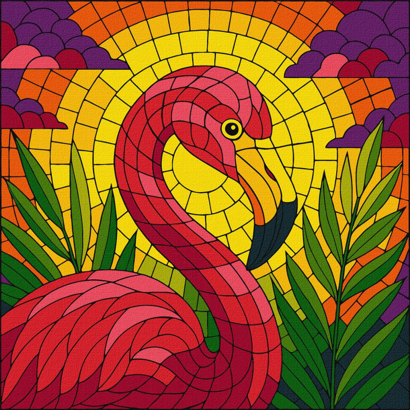 Картина за номерами Вітраж. Фламінго 30х30см КНО5165