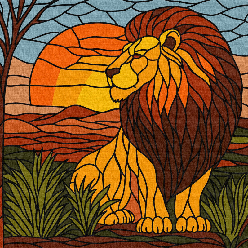 Картина за номерами Вітраж. Лев 30x30см КНО5168