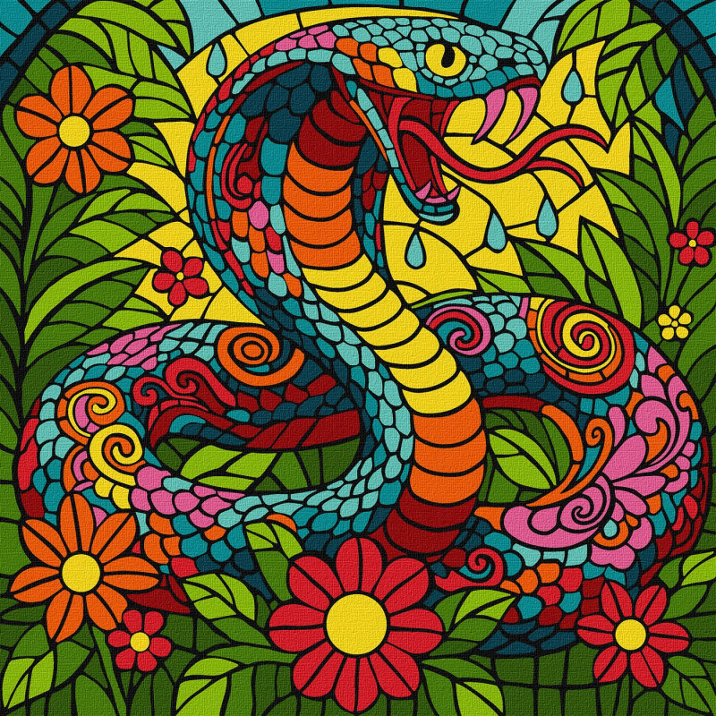 Картина за номерами Вітраж. Тропічна кобра 30x30см КНО5170
