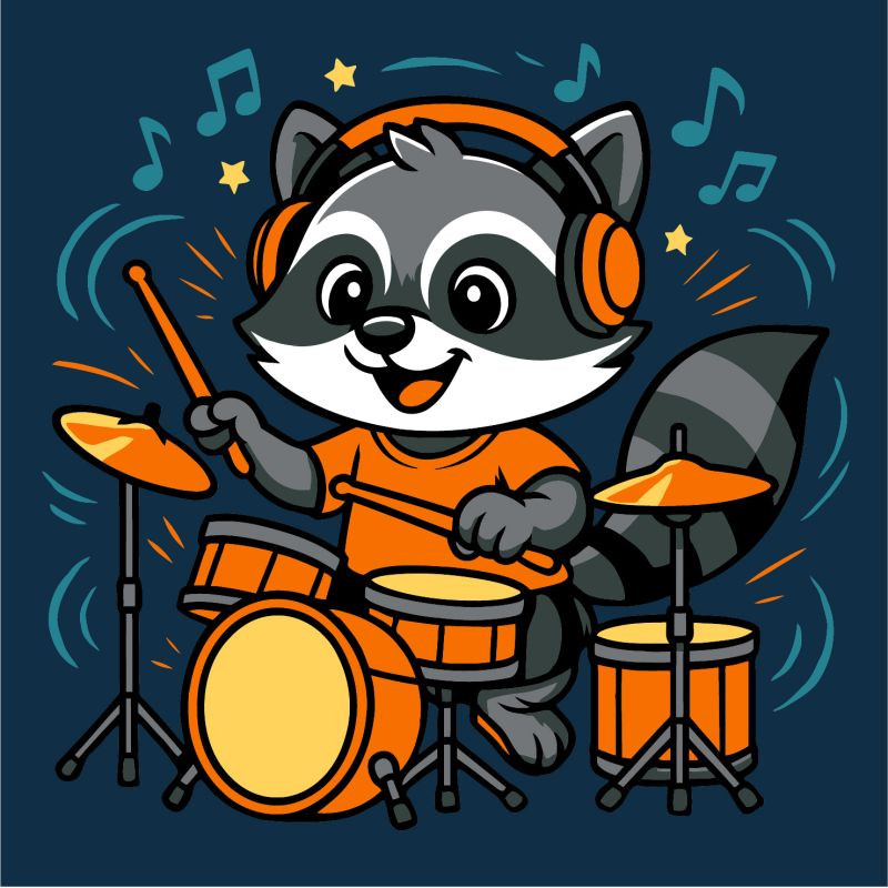 Картина за номерами Єнот з барабанами 25*25см  КНО1310