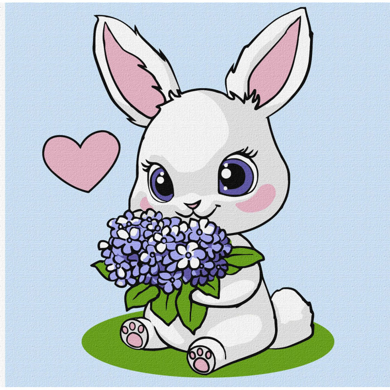 Картина за номерами Зайчик з гортензіями 25х25см  КНО1244