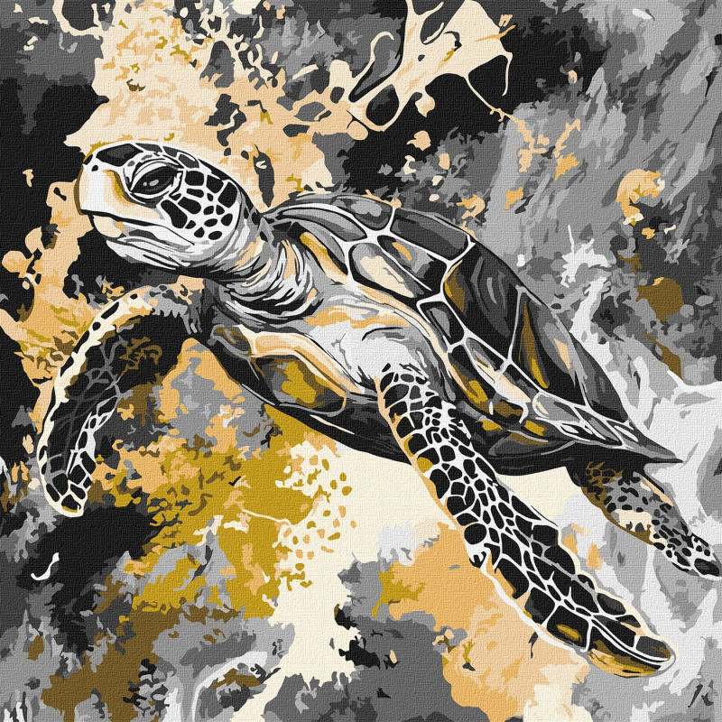 Картина за номерами Золота черепаха з фарбами металiк extra 40х40см  КНО6734